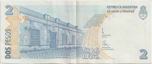 EspecificacionesDivisaPeso ConvertibleSerie1997Valor2 LinkAño1997 LinkEmisorBanco Central de la República ArgentinaInformación adicionalTamaño155 x 65 mmAnversoBartolomé Mitre LinkReversoMuseo Mitre LinkLeyendaREPÚBLICA ARGENTINA en unión y libertad