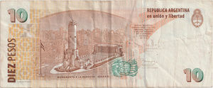 EspecificacionesDivisaPeso ConvertibleSerie2002Valor10 LinkAño2002 LinkEmisorBanco Central de la República ArgentinaInformación adicionalTamaño155 x 65 mmAnversoGral. Manuel Belgrano LinkReversoMonumento a la Bandera LinkLeyendaREPÚBLICA ARGENTINA en unión y libertad
