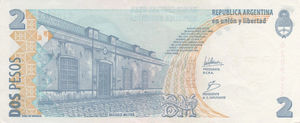 EspecificacionesDivisaPeso ConvertibleSerie2002Valor2 LinkAño2002 LinkEmisorBanco Central de la República ArgentinaInformación adicionalTamaño155 x 65 mmAnversoBartolomé Mitre LinkReversoMuseo Mitre LinkLeyendaREPÚBLICA ARGENTINA en unión y libertad