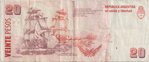 EspecificacionesDivisaPeso ConvertibleSerie2002Valor20 LinkAño2002 LinkEmisorBanco Central de la República ArgentinaInformación adicionalTamaño155 x 65 mmAnversoJuan Manuel de Rosas LinkReversoCombate de la Vuelta de Obligado LinkLeyendaREPÚBLICA ARGENTINA en unión y libertad