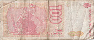 EspecificacionesDivisaAustralSerieAustralValor100 LinkAño1985 LinkEmisorBanco Central de la República ArgentinaInformación adicionalTamaño155 x 65 mmAnversoDomingo Faustino Sarmiento LinkReversoEfigie del Progreso Link