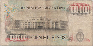 EspecificacionesDivisaPeso Ley 18188SeriePeso Ley 18188Valor100000 LinkAño1981 LinkEmisorBanco Central de la República ArgentinaInformación adicionalTamaño155 x 75 mmAnversoGral. José de San Martín LinkReversoCasa de la Moneda Link