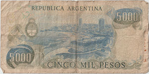 EspecificacionesDivisaPeso Ley 18188SeriePeso Ley 18188Valor5000 LinkAño1981 LinkEmisorBanco Central de la República ArgentinaInformación adicionalTamaño155 x 75 mmAnversoGral. José de San Martín LinkReversoMar del Plata Link